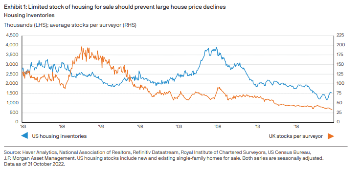 👉 L'immobilier US va ralentir, mais un krach façon 2008 semble peu probable : peu de stock en vente + faible quantité d'emprunts à taux variables (5% contre 20% en 2008)