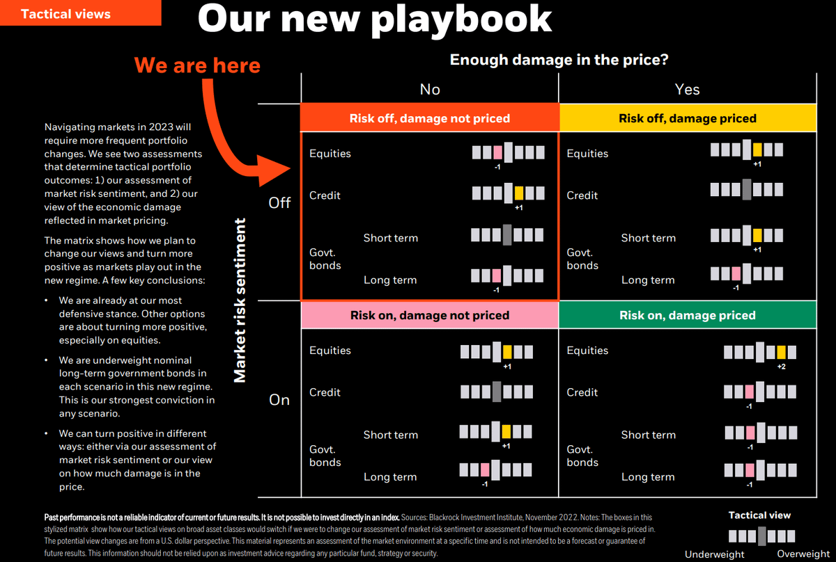 👉 BlackRock est toujours sur la défensive : surpondération des crédits (haut rendement grâce à la hausse des taux), sous-pondération des assets risqués et obligations d'état