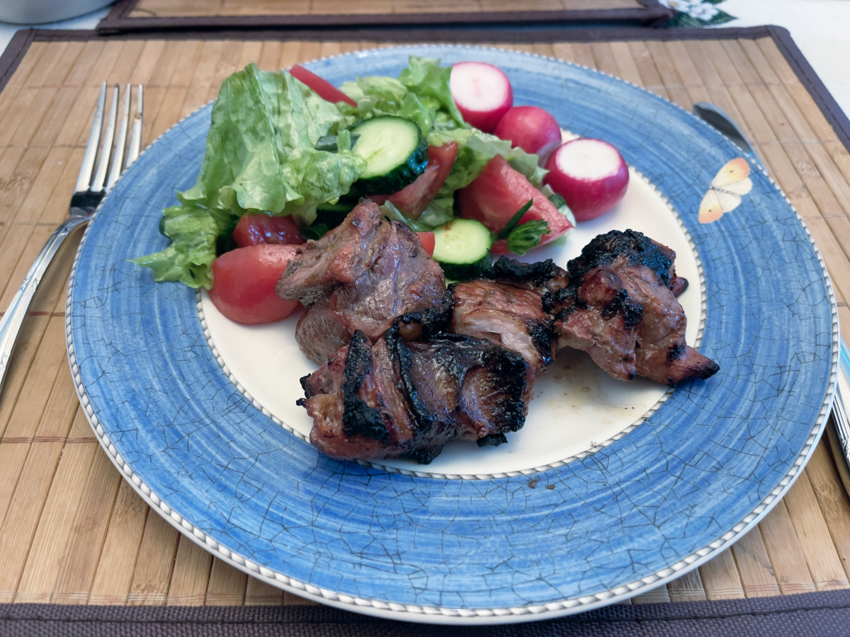 Но вообще шашлык (или кебаб) — это обычное мясное блюдо, которое можно есть хоть каждый выходной или даже чаще, если на то есть желание. Я его готовлю чуть ли не круглый год — и в прошлом мае готовил, если вас так интересует, и даже месяц назад, в декабре. И расскажу, как.