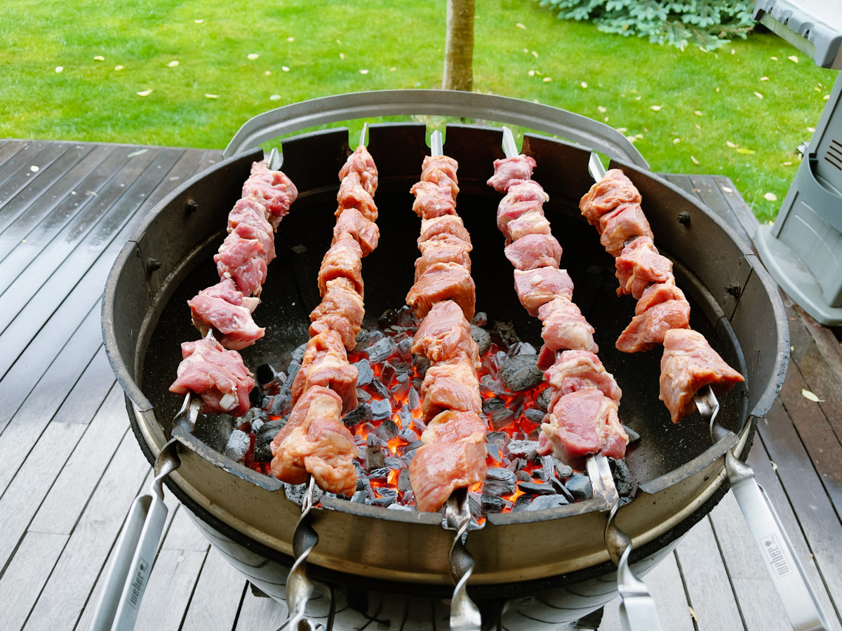 Не тушите огонь водой, если он занимается от капель капающего жира. Поднимите шампуры и подождите. И вообще, активно поворачивайте мясо — это очень важно.