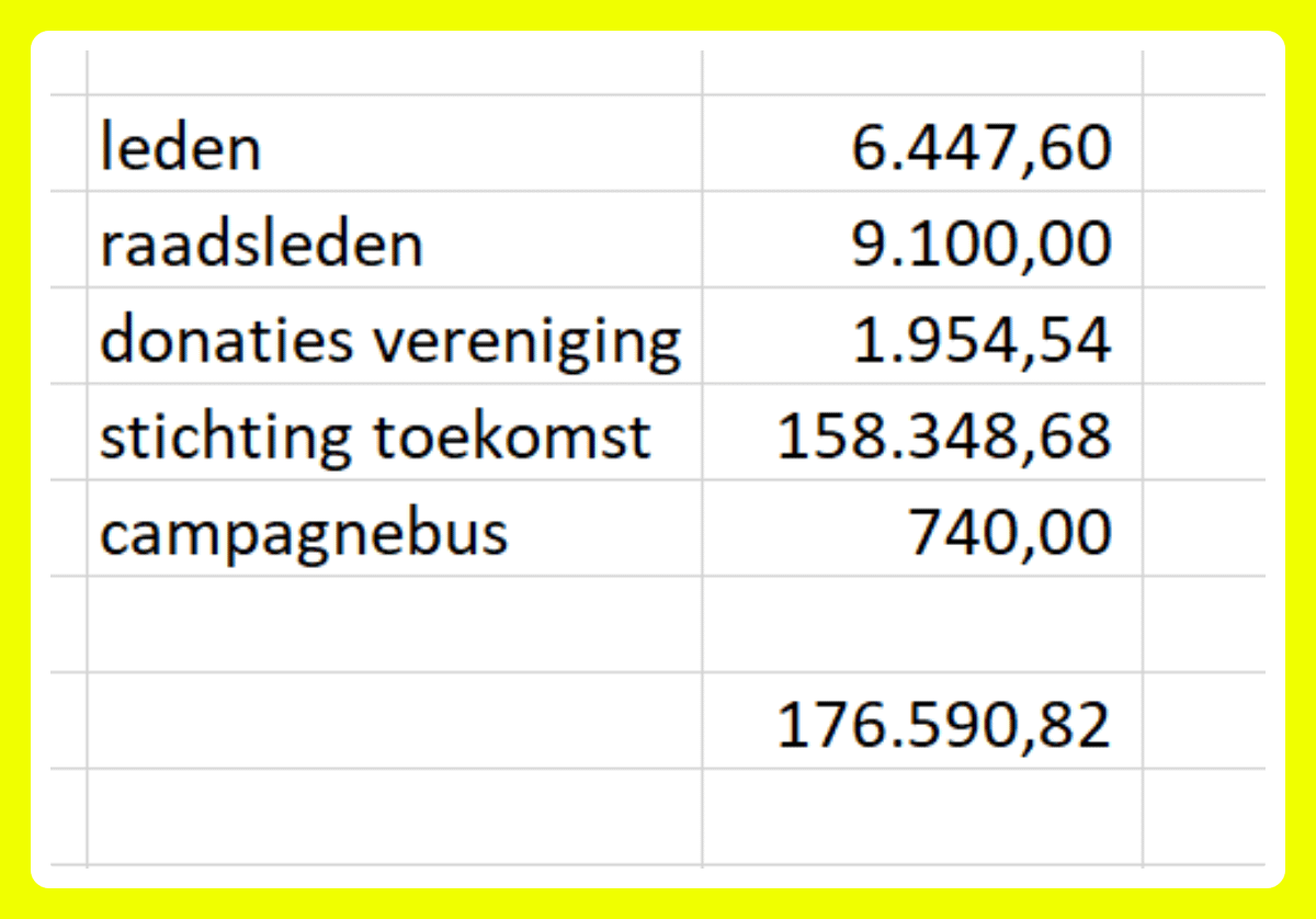 Nog een laatste bonus uit de brief / het jaarverslag / excel van HvdH. Want welke optelling is het nu echt? Was het € 163.963,07 of € 176.590,82 of toch de € 175.265 uit het jaarverslag?