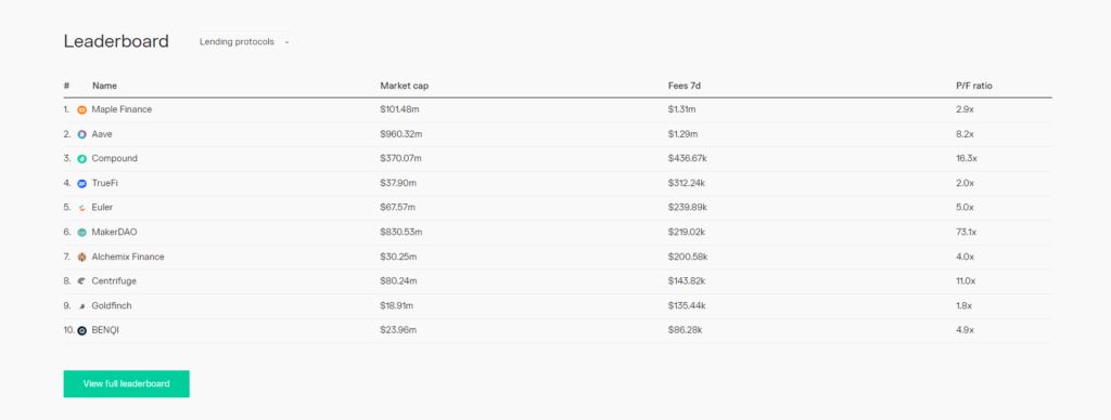 Chúng ta sẽ cùng lấy 2 ví dụ về 2 nền tảng Lending Protocol đang đứng top về doanh thu là Maple Finance –