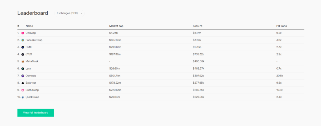 Tiếp theo đến những nền tảng DEX cũng tạo ra các doanh thu đáng kể. Các nguồn doanh thu này lớn hơn các nền tảng Lending Protocol khá nhiều. Có thể kể đến như:
