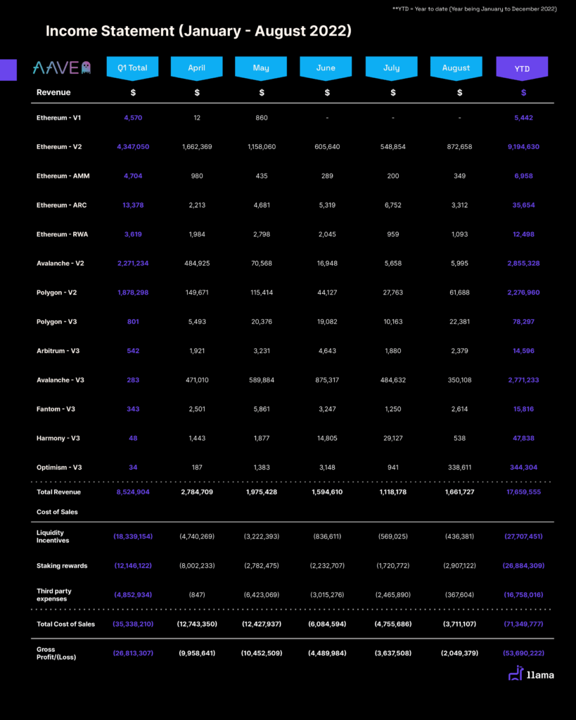 AAVE trong hoàn cảnh lỗ hơn rất nhiều tính từ thời điểm khi dự án bắt đầu đi vào hoạt động dự án đã tạo ra tổng thể $17M nhưng chi phí bao gồm