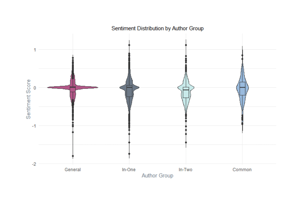 Sentiment Analysis: As mentioned, the trio-authors were notably more negative than the average user. You can see in the data visualization how posts from accounts that had high-performance tweets on multiple topics become more polarized. infoepi.org/posts/2023/10/24-Israel-ukraine-vaccines#sentiment-analysis