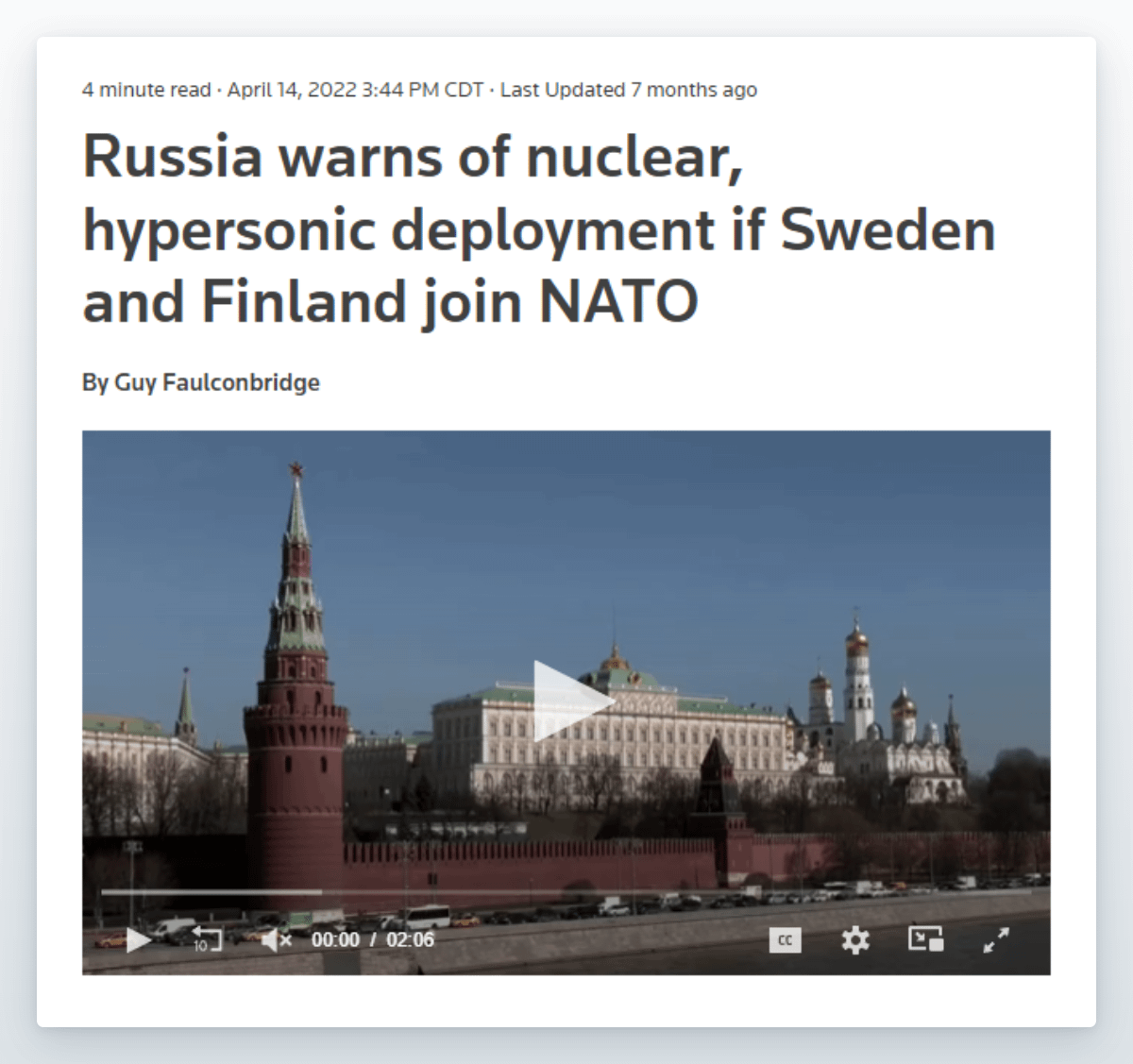 Russia threatened nuclear retaliation if Sweden, Finland joined NATO (Also, yes, there are major differences between Ukraine and Georgia vs Sweden and Finland. Still, it's clear NATO needs to address the vulnerabilities and irrational behavior, which I'll discuss later).