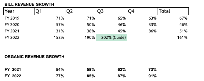 They acquired invoice2go and Divvy. Both businesses have seen tremendous underlying growth and helped to increase BILL's take rate on their customer's transactions.
