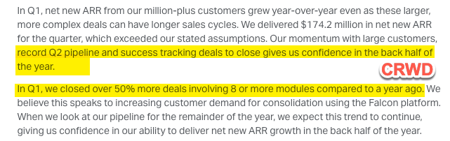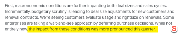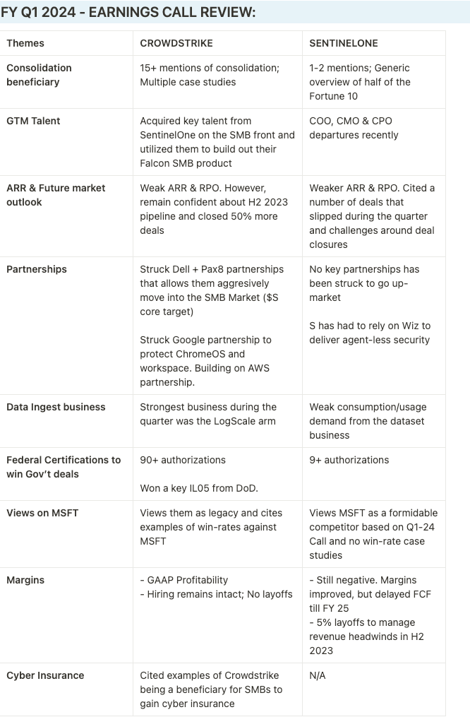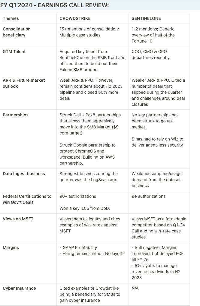 This is translating to issues especially in this current environment. For example, $S saw a 'pronounced' Q1 than did $CRWD. However, $CRWD closed more deals and is confident about the back half of the year. These are stack differences for similar competitors.
