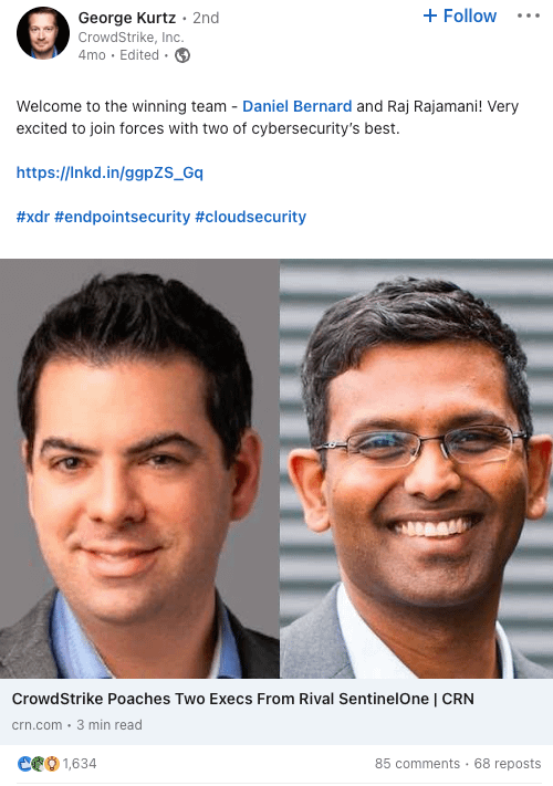 The dynamic currently at work: 1. $CRWD is the leader on Gartner 2. $CRWD has a strong managed service and partnerships to support customers (SMB & Ent) 3. Full breadth of product modules for customers to consolidate on This makes it easier for MSSP/VARs to pitch CRWD over $S