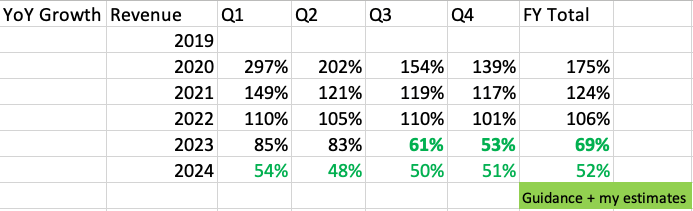b/ These are Con. YoY growth estimates for nxt Qs (IMO, think we see +72% in 23 & +60% in 24):