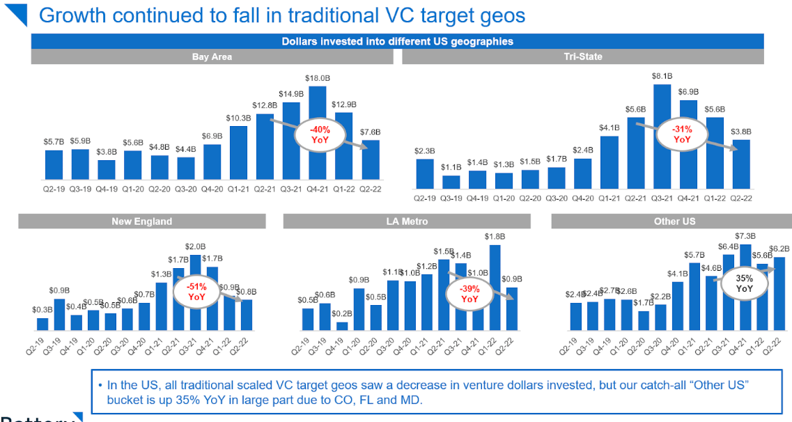 Personally, I found this chart fun that funding deal activity "in other areas of the US" actually grew +35% vs -v negative in other main regions.