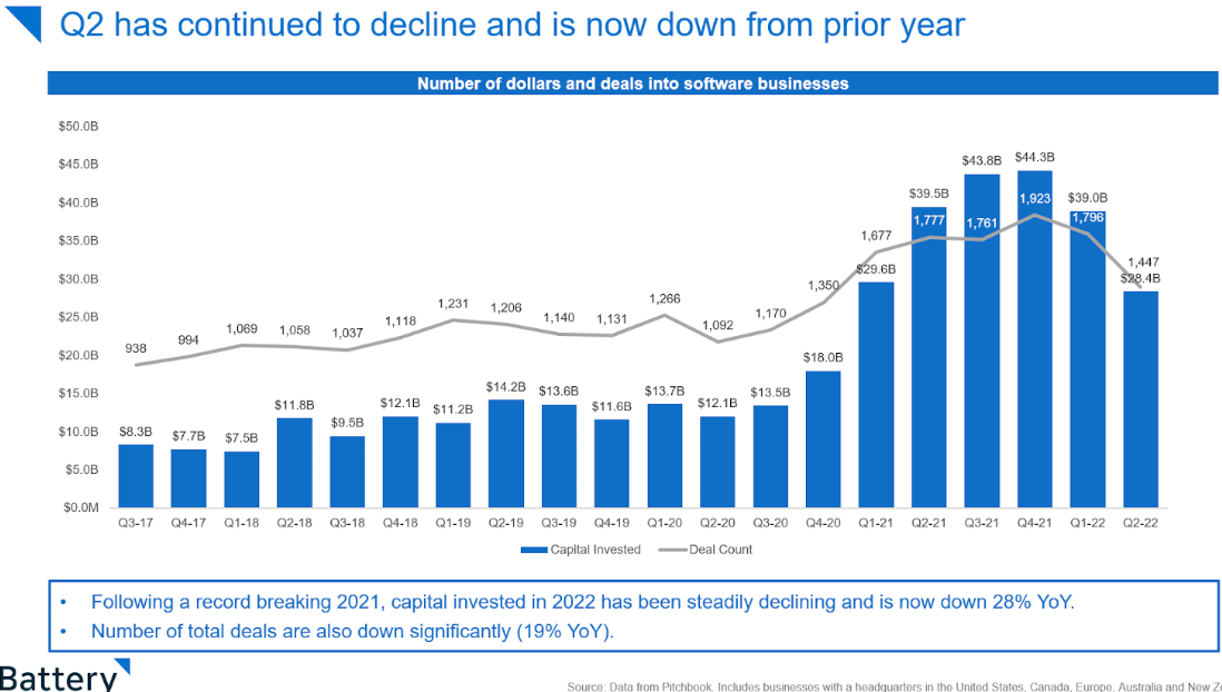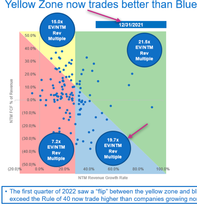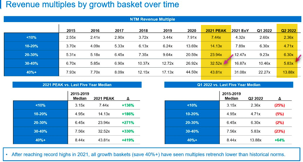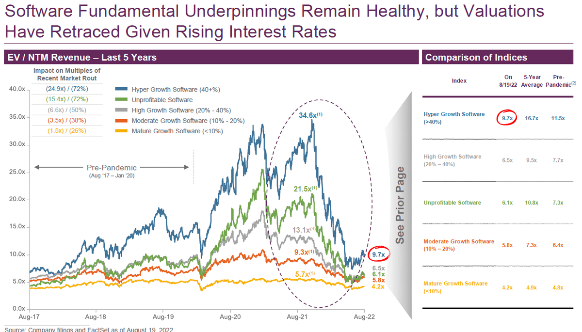 Their chart shows how valuations have compressed, but they break it apart by different sub-sectors in software and time periods.