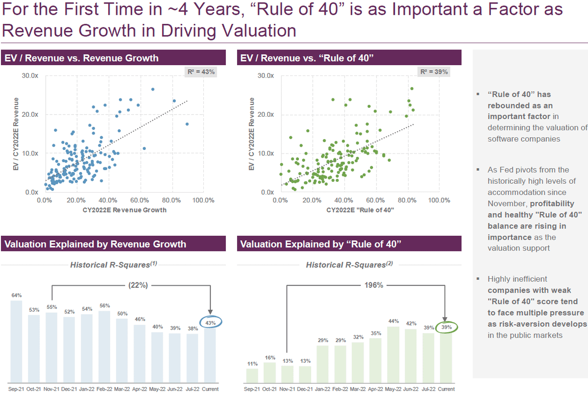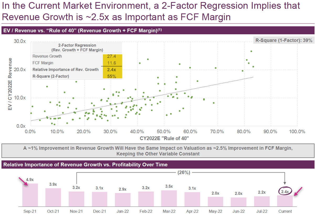5/ The caveat, though, is that growth is still important (2.5x factor regression), but the factor has lessened over time (bottom left chart)