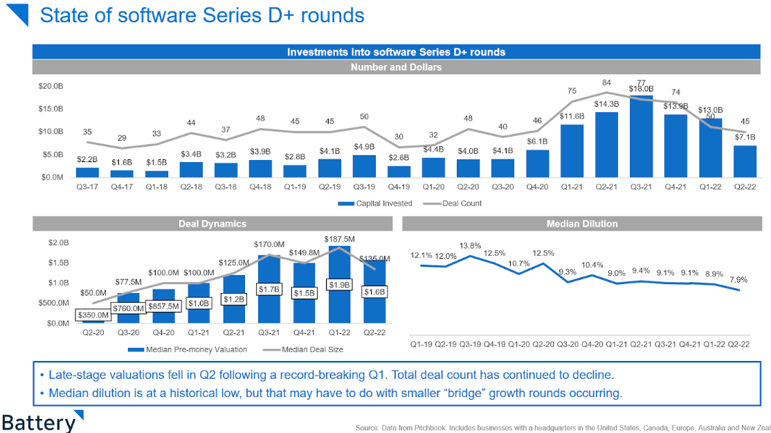 For ex. Series A + B deals/valuations are still holding steady. Not surprising.