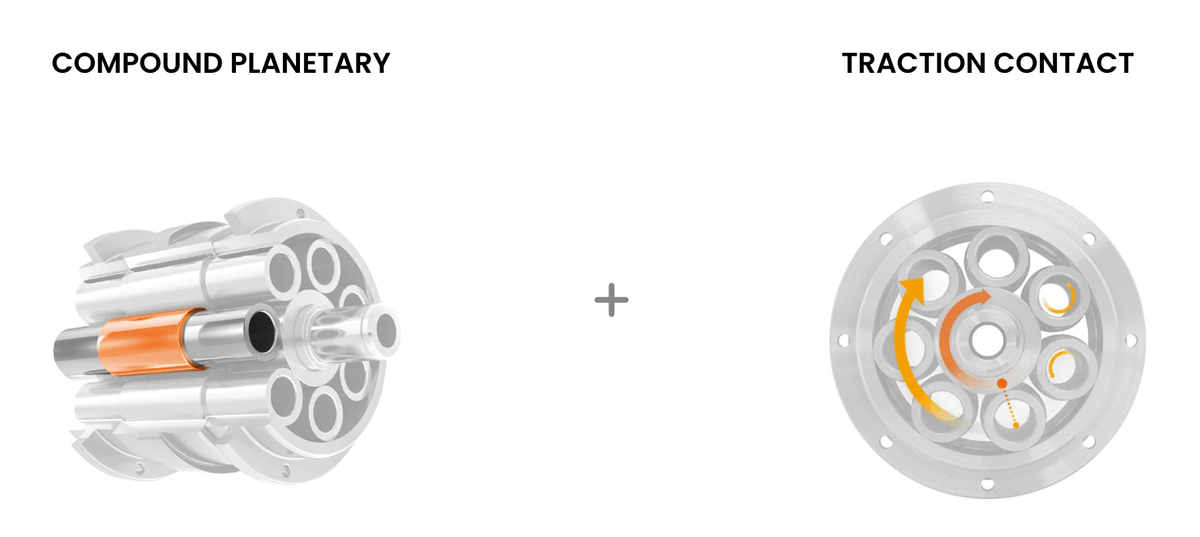 Instead of metal teeth, they use controlled friction between rolling cylinders under compression.
