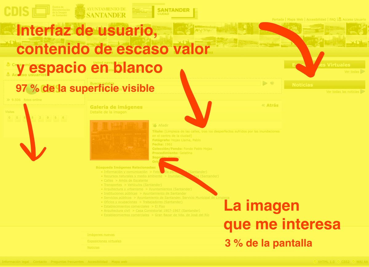 😬 El 97 % de la superficie de pantalla es espacio vacío o contenidos secundarios.