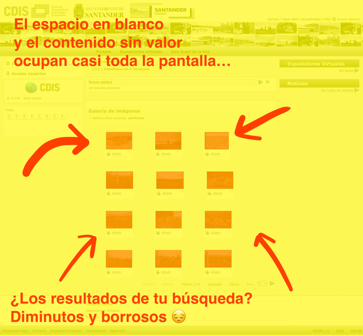 El buscador del sitio web del CDIS es el portón que confiere el acceso principal al tesoro fotográfico de la ciudad. Pero es ineficaz, y presenta sus resultados diminutos y borrosos. 😩