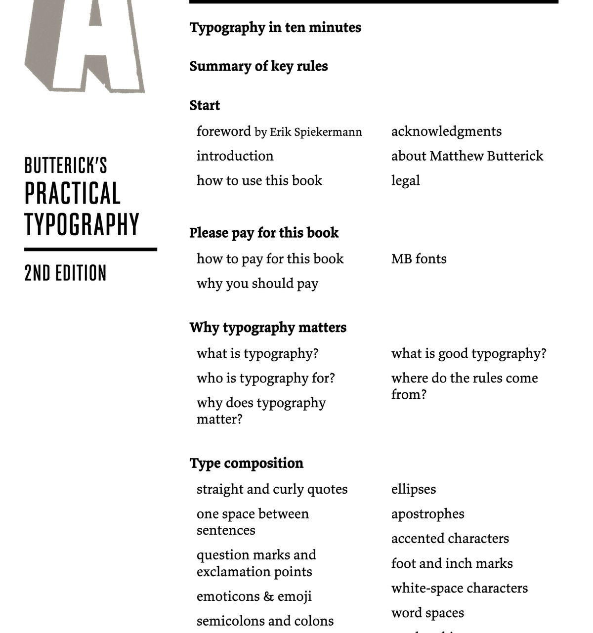 El libro «Practical Typography» que antes he referido es un buen ejemplo de esto mismo. Es una secuela más general y ambiciosa de un libro previo del autor.