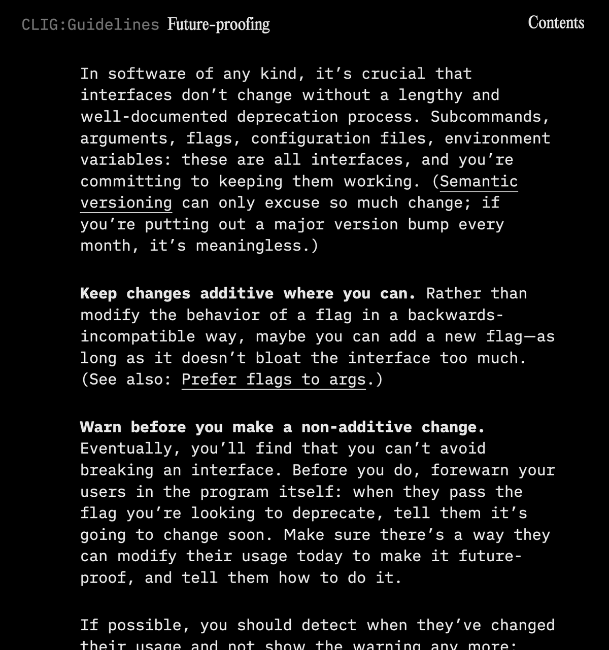 En «Command Line Interface Guidelines» los autores no expresan ningún interés económico. Entregan generosamente una obra excelente con licencia abierta: Creative Commons.