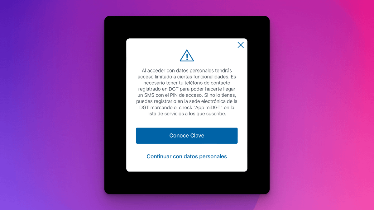 Insisto en que ya superé esta yincana la primera vez que instalé miDGT. Que ya he utilizado la aplicación satisfactoriamente en el pasado. Pero ha dejado repentinamente de funcionar y ahora estoy atrapado en un callejón sin salida, incapaz de iniciar sesión en su «app».