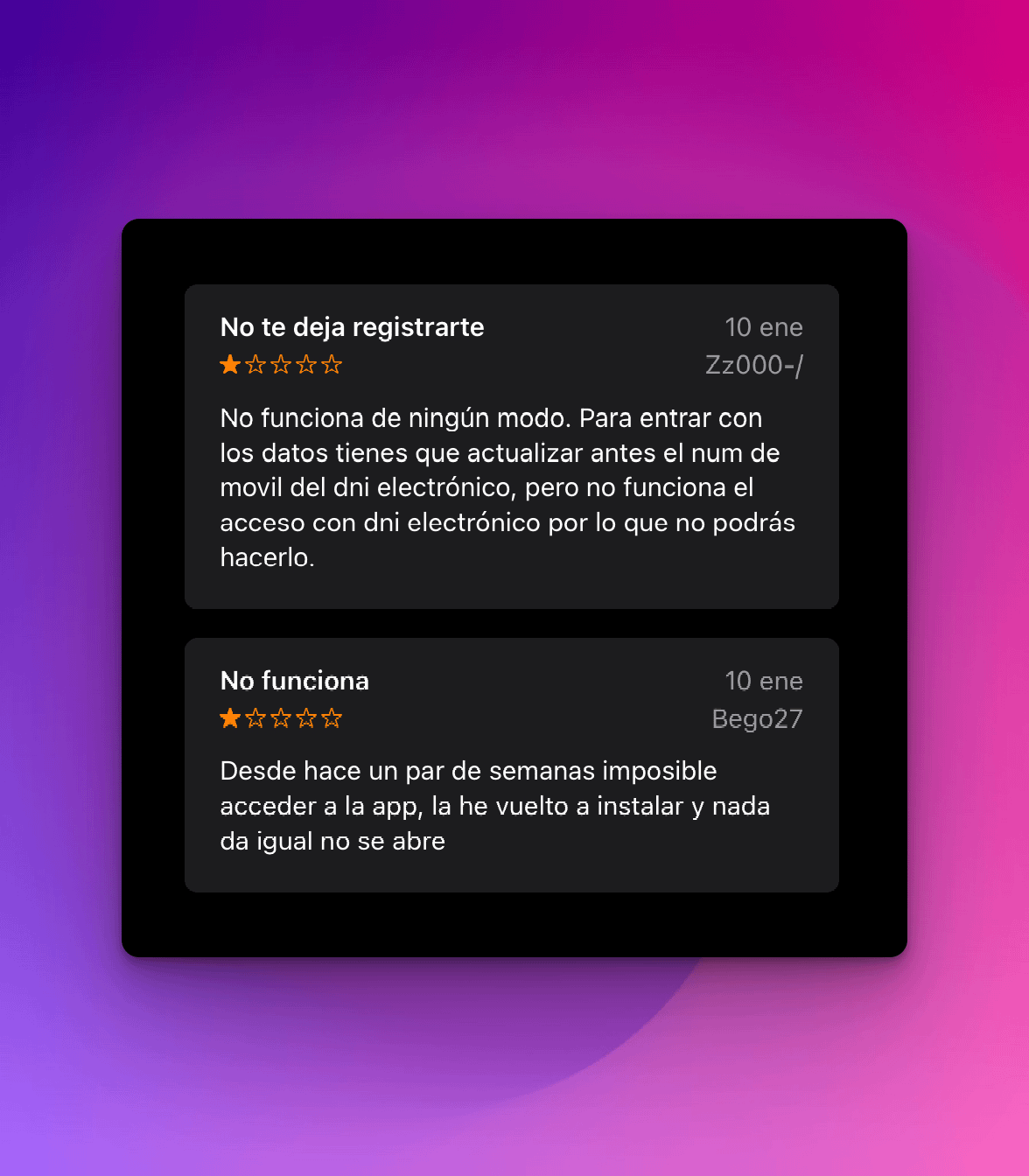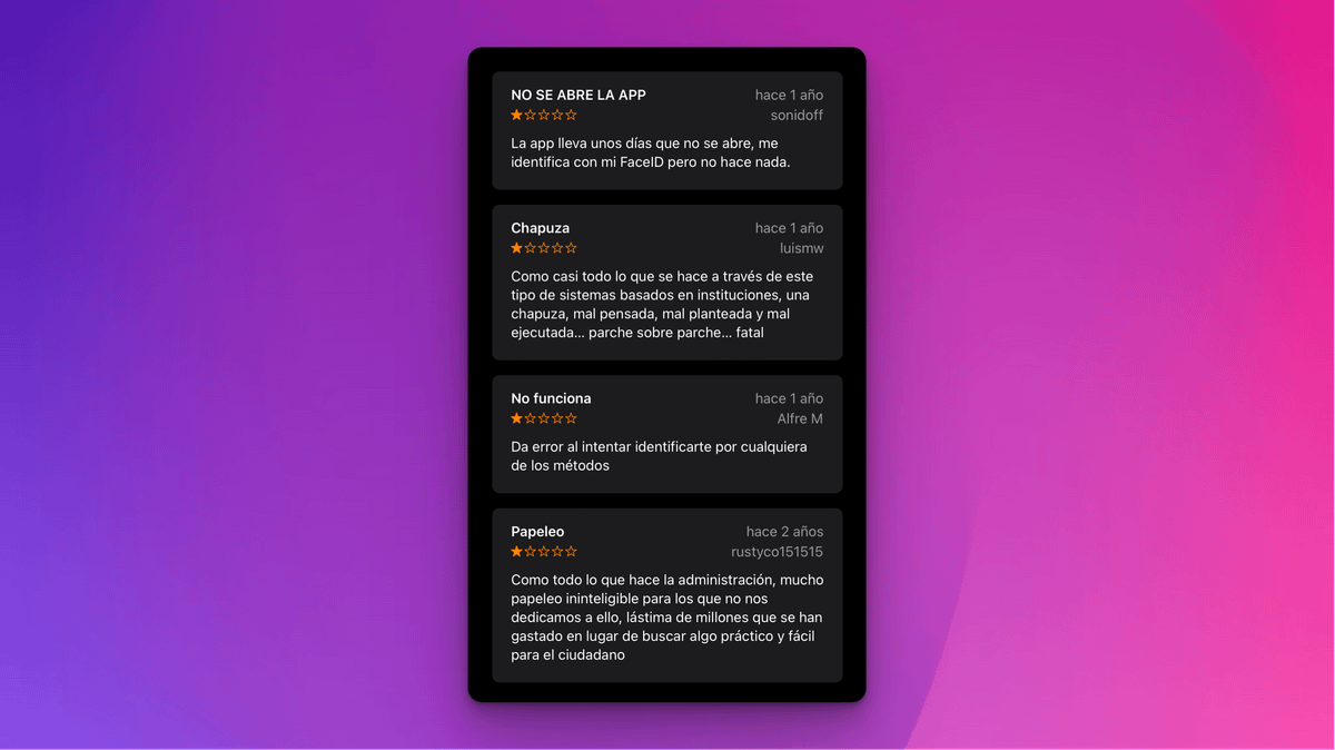 Dicho esto, les explicaré a continuación mi propia experiencia personal, que es tan frustrante como la que reportan los miles de usuarios que se han tomado la molestia de valorar su «app» con la esperanza de que ustedes, algún día, la mejoren.