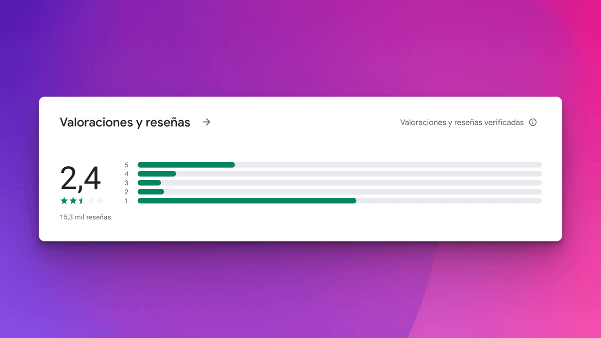 La valoración de los usuarios de Android no es muy diferente: la aplicación suspende y para la mitad de ellos merece la puntuación más baja posible.