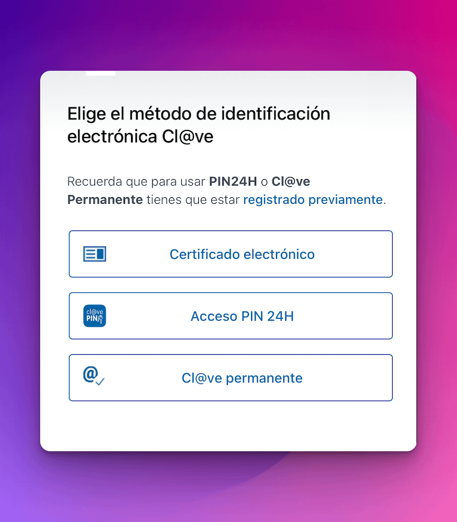 Selecciono la primera opción, «Cl@ve», y se me presentan tres opciones más (!).