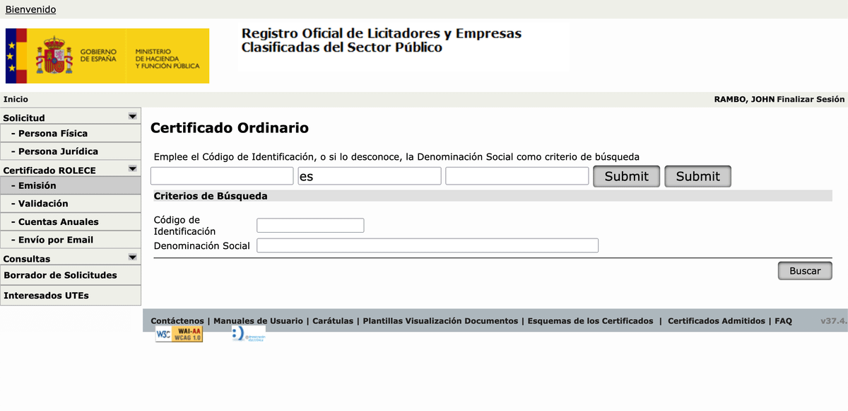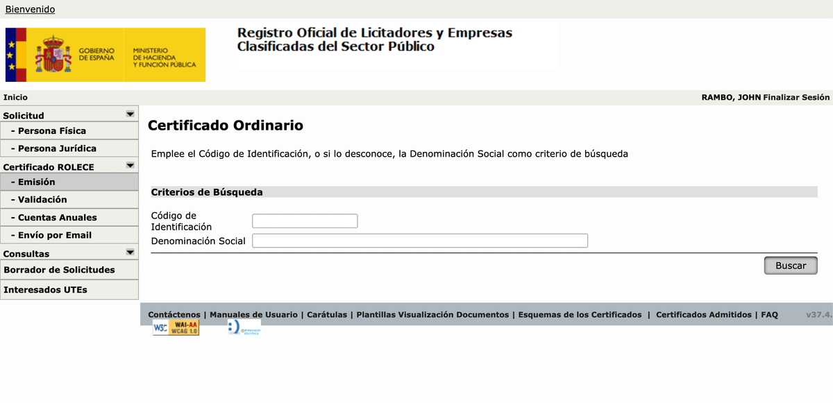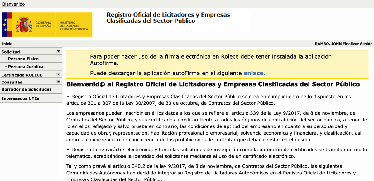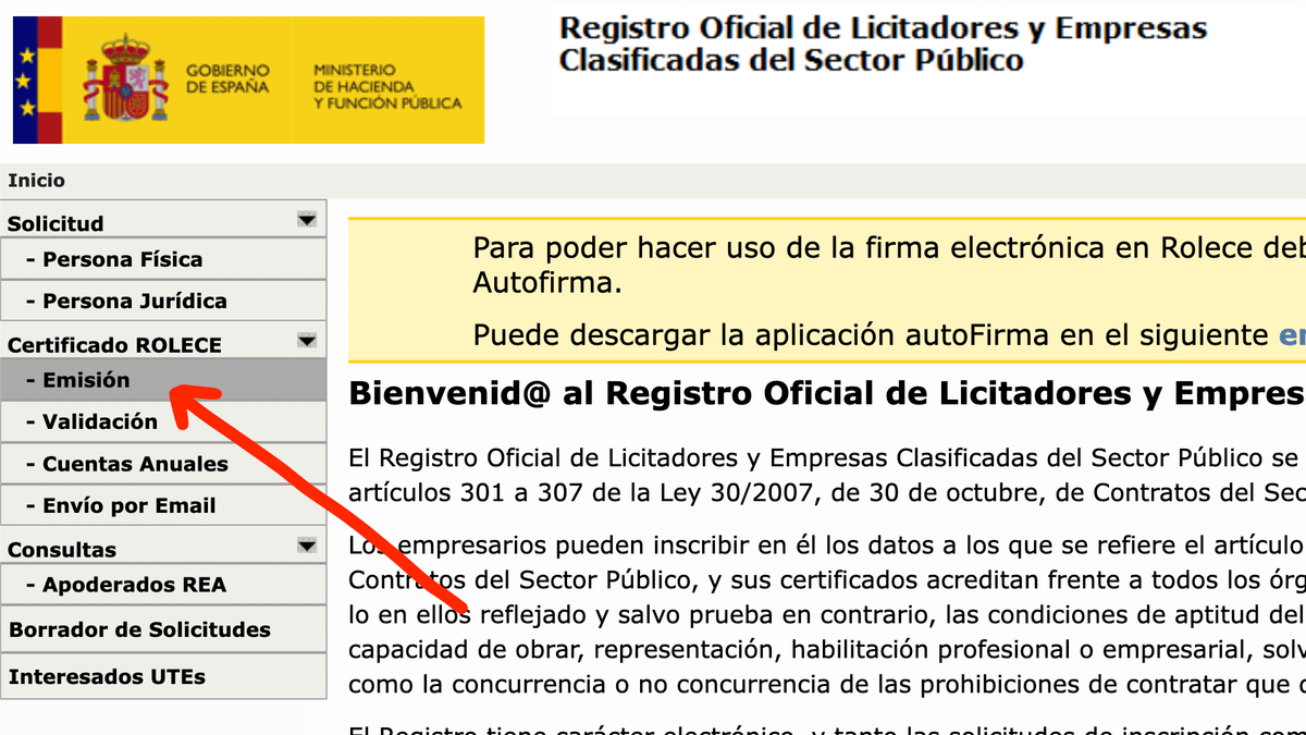 Esto de la imagen es el Registro Oficial de Licitadores y Empresas Clasificadas del Sector Público. El ROLECE, para los amigos. Un viejo conocido de mis distinguidos e inteligentes seguidores. 🥰