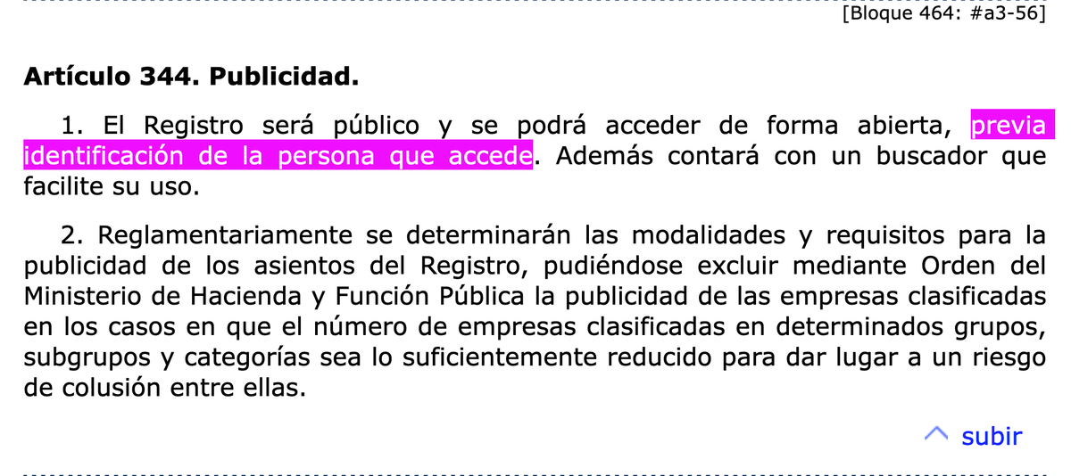 Aunque es un registro público al que se ha de poder acceder «de forma abierta» (lo que sea que eso signifique), la Ley 9/2017, de Contratos del Sector Público, establece que antes es preciso identificarse.