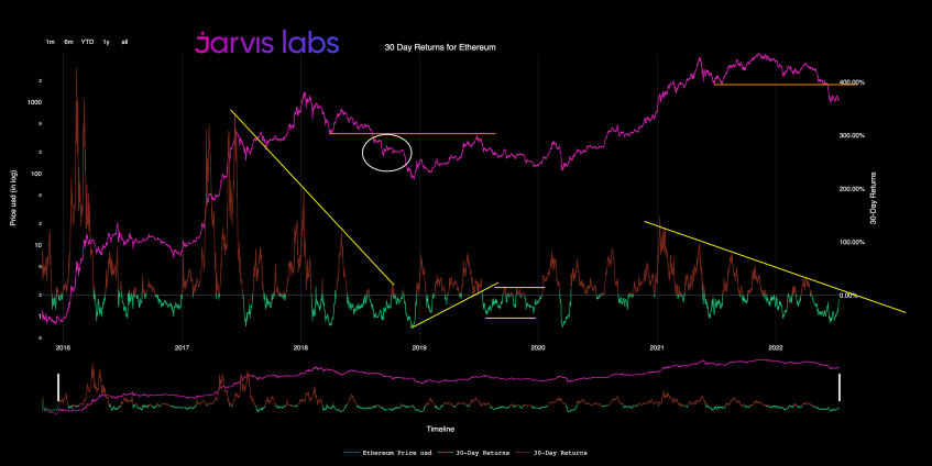 This chart shows ETH's 30d returns moving towards 0% after being deeply negative since April & below we unpack the idea...