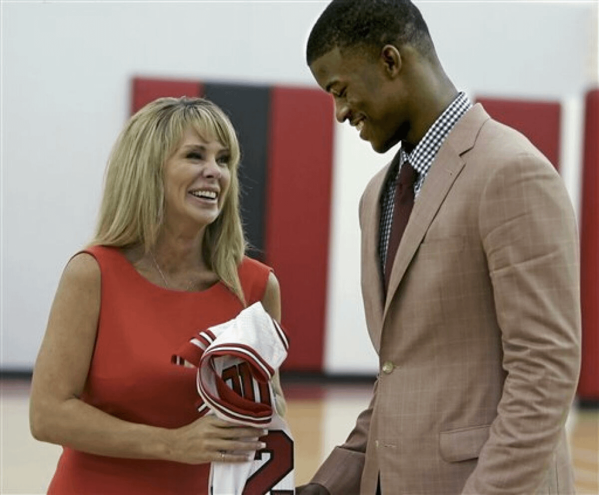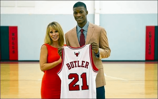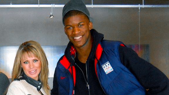 Si buscáis Jimmy Butler en Google, y buscáis imágenes de su llegada como Rookie a la NBA o de su despedida de la Universidad, veréis a Butler muy cariñoso con una mujer rubia. Esa mujer es Michelle, a quién considera su verdadera madre.