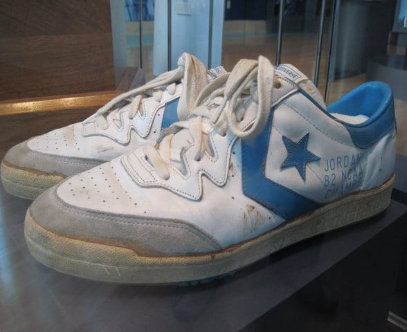 Antes os he dicho que todos los jugadores de Carolina del Norte llevaban Converse, pero os he mentido. Entre aquellos chicos estaba un jovencísimo Michael Jordan, y Jordan estaba empeñado en calzarse unas Adidas en los entrenamientos (en los partidos no podía).