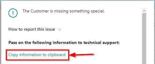TL;DR #msdyn365bc: Please, with errors, use "Copy information to Clipboard" not screenshots.
