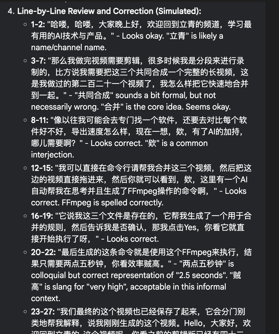 感人的思维链,真的是逐行检查啊 😭 🎺 对于视频创作者来说:99.3% 准确率的视频字幕,你会愿意多花 9 倍的价格吗?