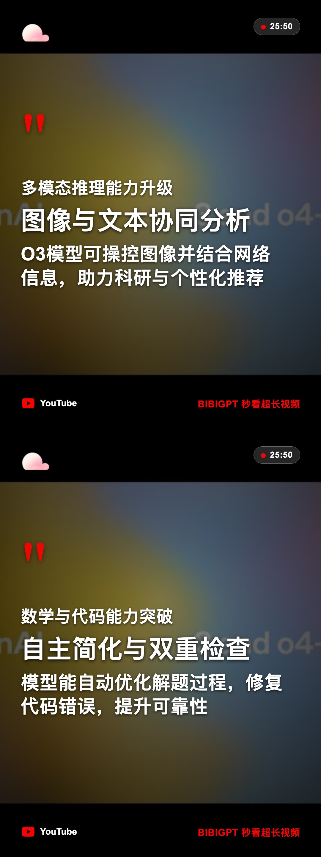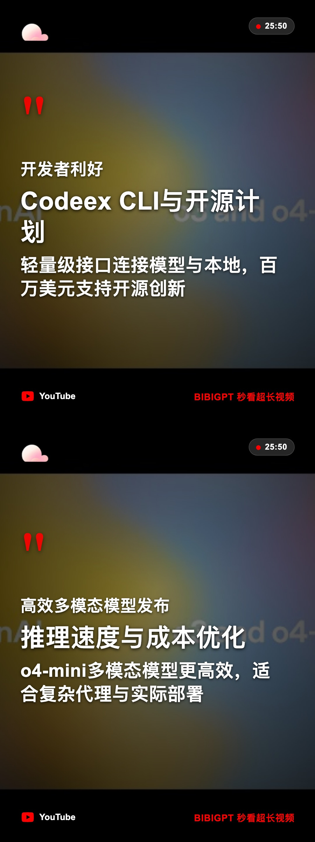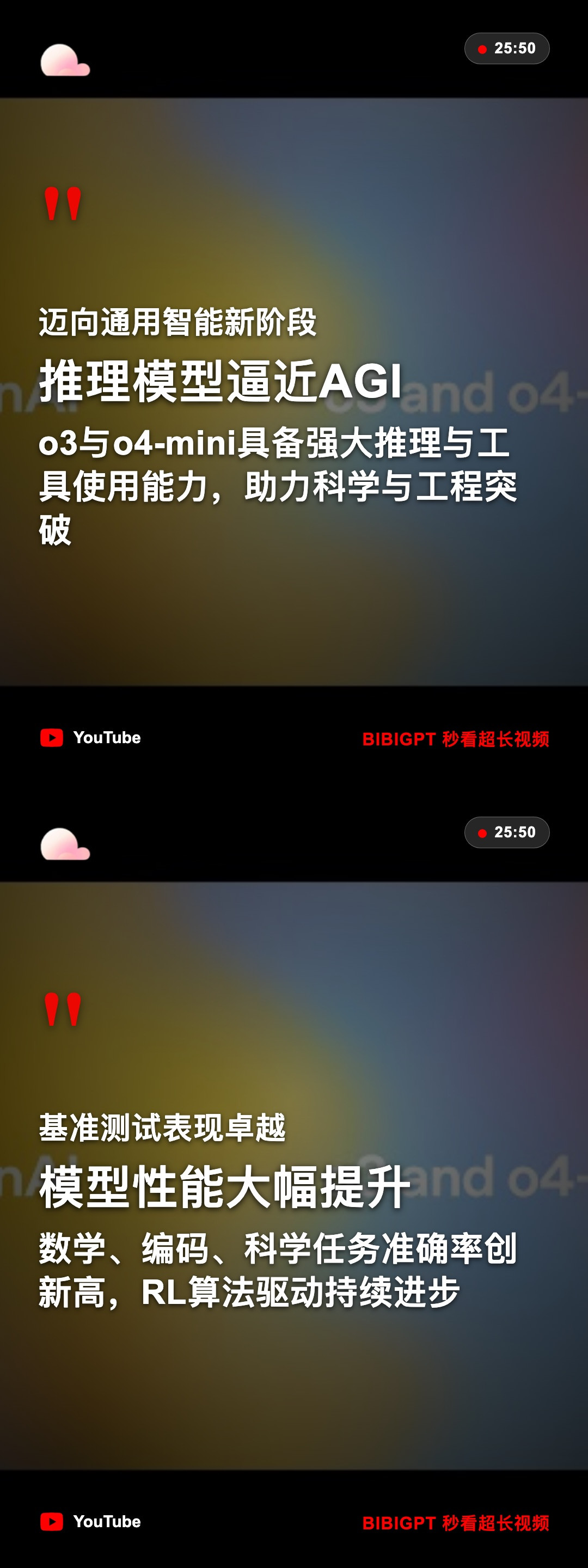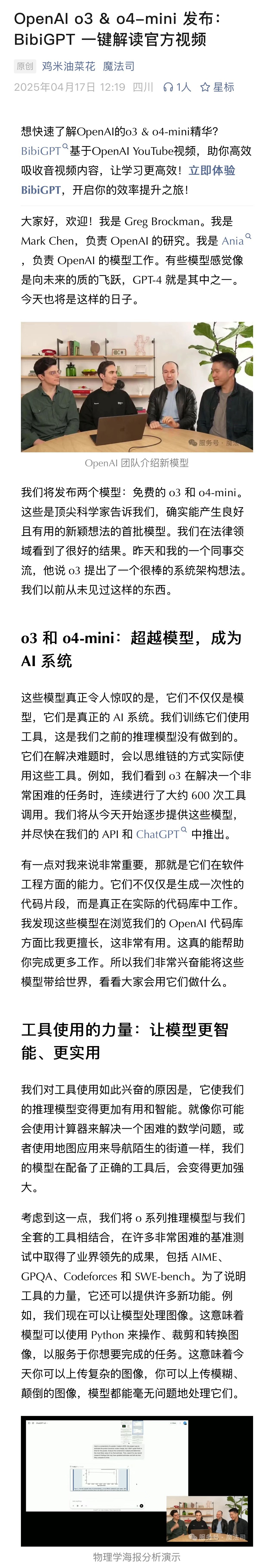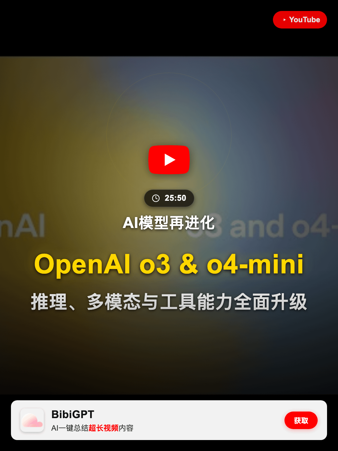 🎉 BibiGPT Pro 快速根据 o3/o4-mini 最新视频进行内容创作,包括公众号文章、小红书图片、Notion 知识库、双语翻译(字幕压制)、动态网站等 一个人就是一支队伍,不用熬夜追热点,BibiGPT 都已经创作好各种素材,把菜端上桌了,以下是 5 种定制化输出的用法 🧵/