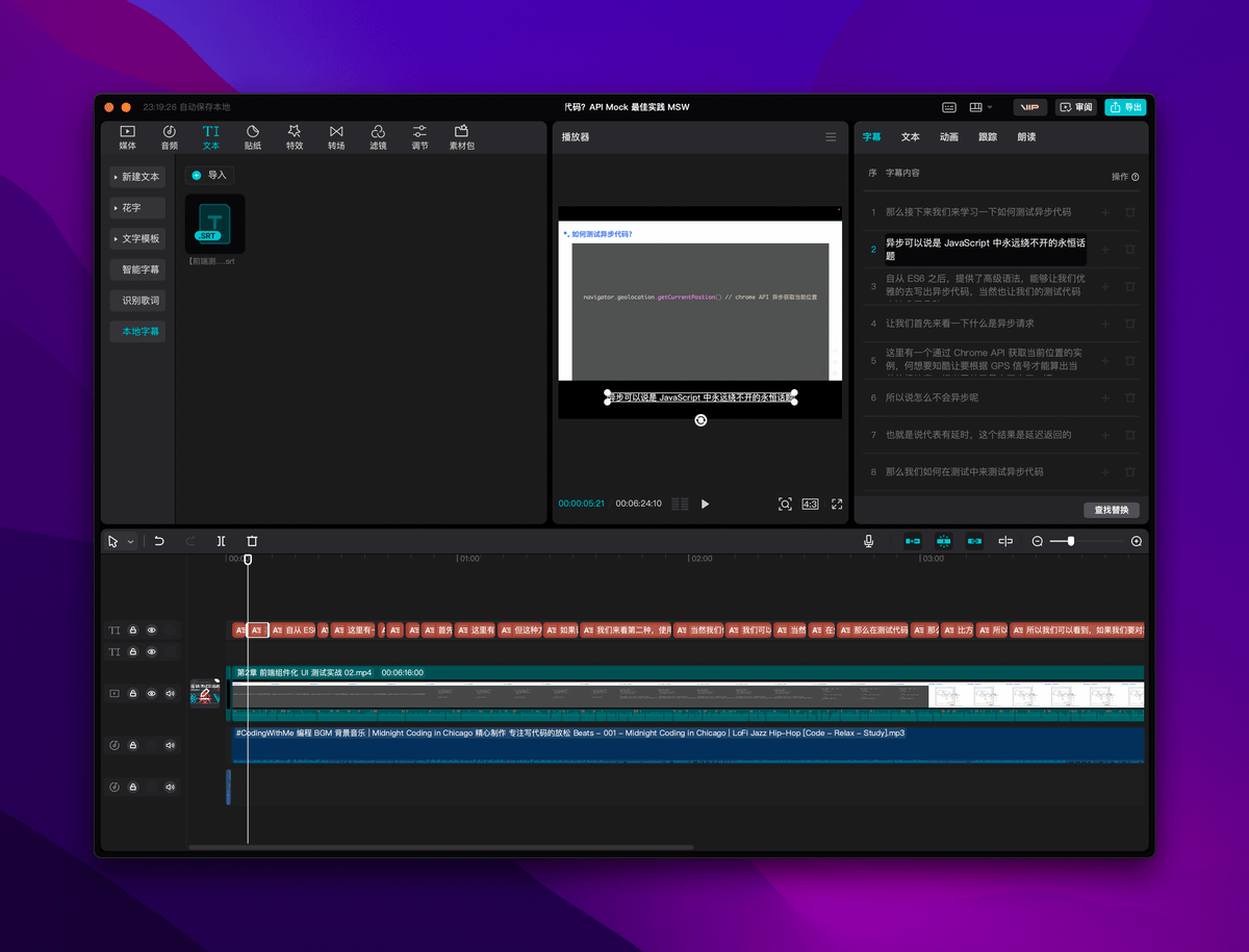 剪映桌面端,最近支持了单独导出音频文件,这加速了我通过飞书妙记获取字幕的过程。 原因在于,飞书妙记的字幕识别更准确,且更容易修改,导出srt文件之后还能批量替换 🧵 /n 这个 Thread 分享我在视频创作时,字幕识别+自动校对的最佳实践。 投稿数 122,欢迎关注 B 站:
