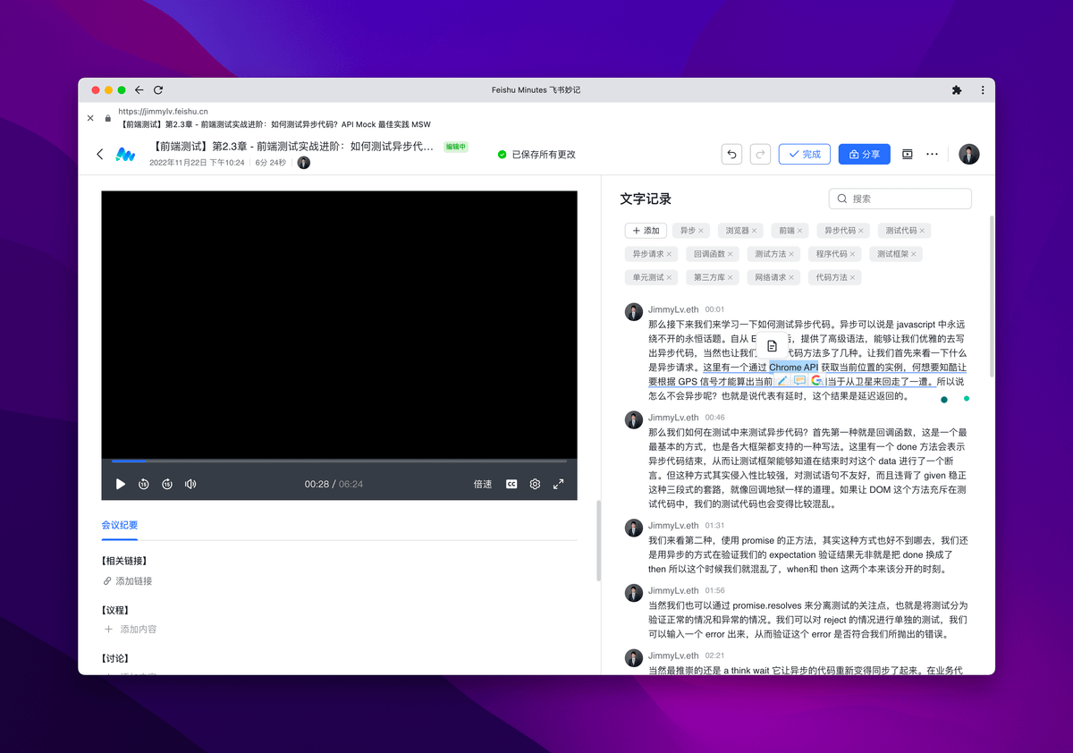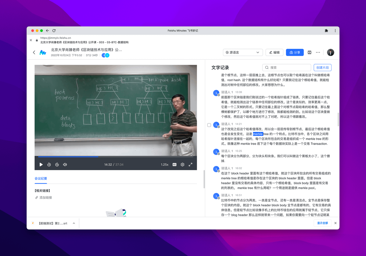 4. 让工具辅助你的 Workflow,重要的是创造知识。 如上,我分享的是借助工具进行视频创作,是一个 Output 过程。 制作字幕的过程,本质上是一种迭代,而不应该成为一种消耗。 当然,Input 时我也会借助飞书妙记,让视频学习更高效,非线性获取知识。 (如图2,下回再讲)