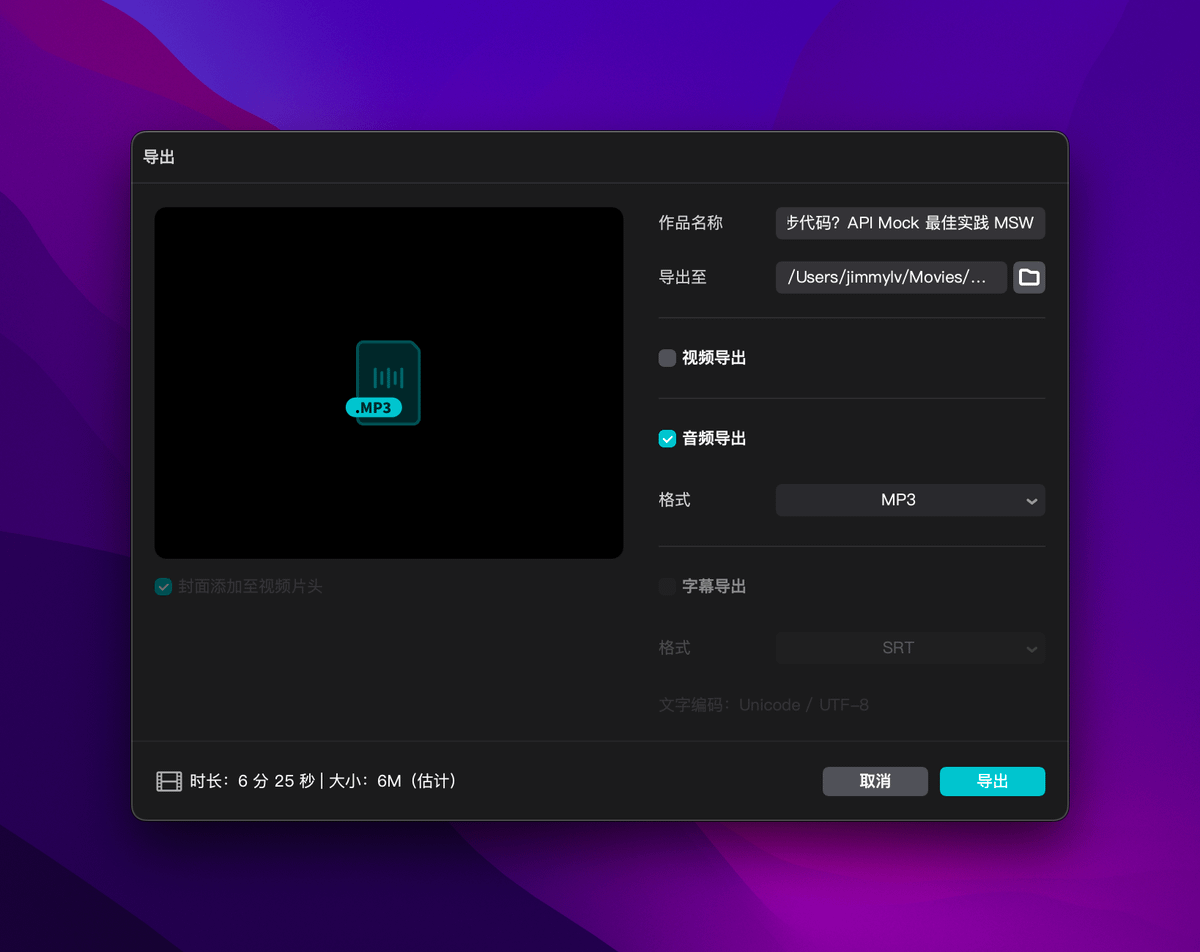 1. mp3 文件上传至飞书妙记,自动识别文字,准确度相当高。 我最喜欢的是「非线性」“看”视频,根据文本快速回溯视频位置。 - 识别后的文字支持修改;也支持高亮(标记识别错误) - 后续可以导出为文档或txt, srt 字幕文件 p.s. 飞书妙记在移动端还有一个 Podcast 播客模式