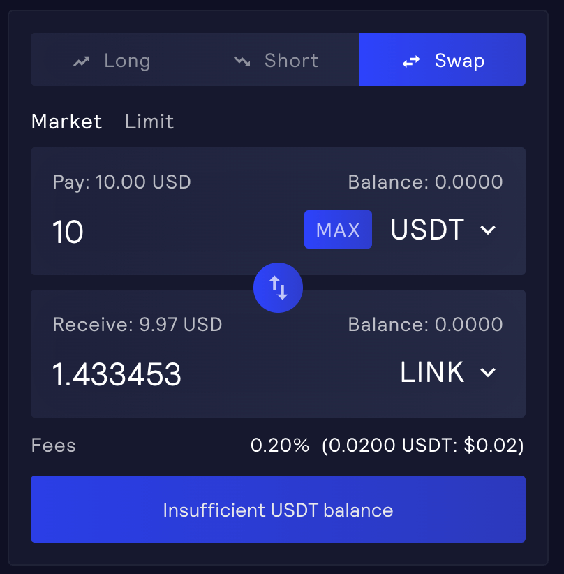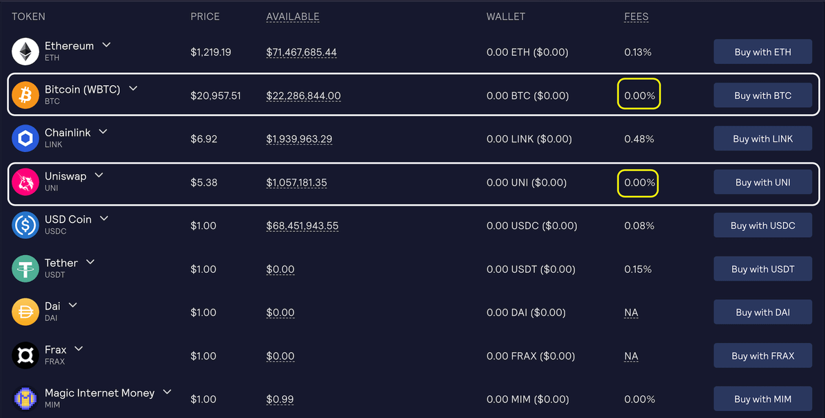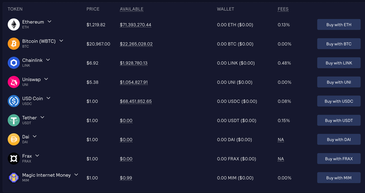 To open this position, you must deposit some collateral in the form of $BTC, $ETH, $LINK, $UNI, $USDC, $USDT, $DAI, $FRAX or $MIM.