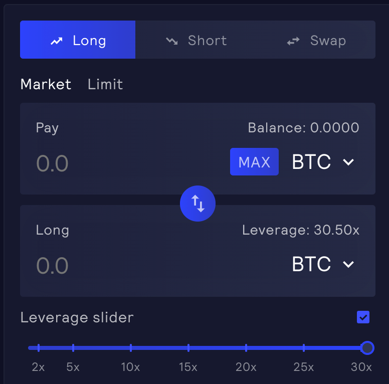 Then, you can drag the leverage slider - it starts at 1.1x and scales up to 30x.