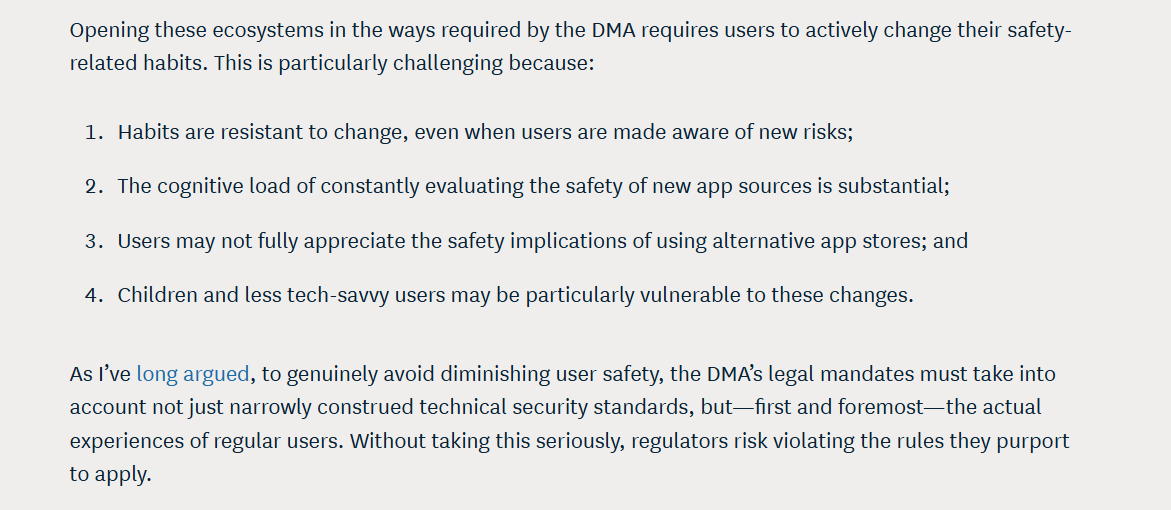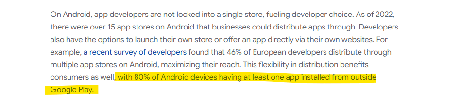 But that's in the context of Apple's ecosystem, where alternate apps still need to go through alternate app stores and still have some notarization checks before they can be installed. The situation is far far worse on Android.