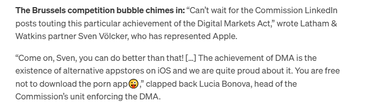 When the DMA obligations started to apply in March of last year, AltStore got a lot of visibility, but for some of the wrong reasons. It was held up by the Commission as one of the successes of the DMA, but it was rife with piracy and other problems x.com/KayJebelli/status/1775521427636039914