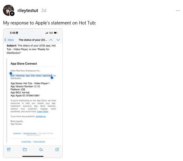 I looked into this issue back in December and I wasn't sure how Apple was mitigating the risk from link outs when it changed its policy, but it's clear now that this notarization (and "approval") is how. But it's not the same for Android x.com/KayJebelli/status/1863320299837743251