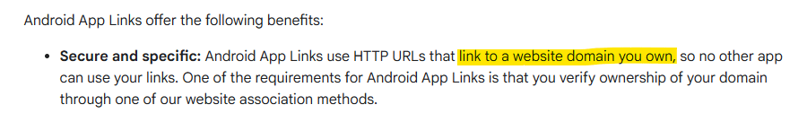 Links in Android apps have to go to a website domain owned by the app developer, and that has to be verified. But if the EC takes the same approach to Android as it does to iOS, then these links could go to 3rd-party websites developer.android.com/training/app-links