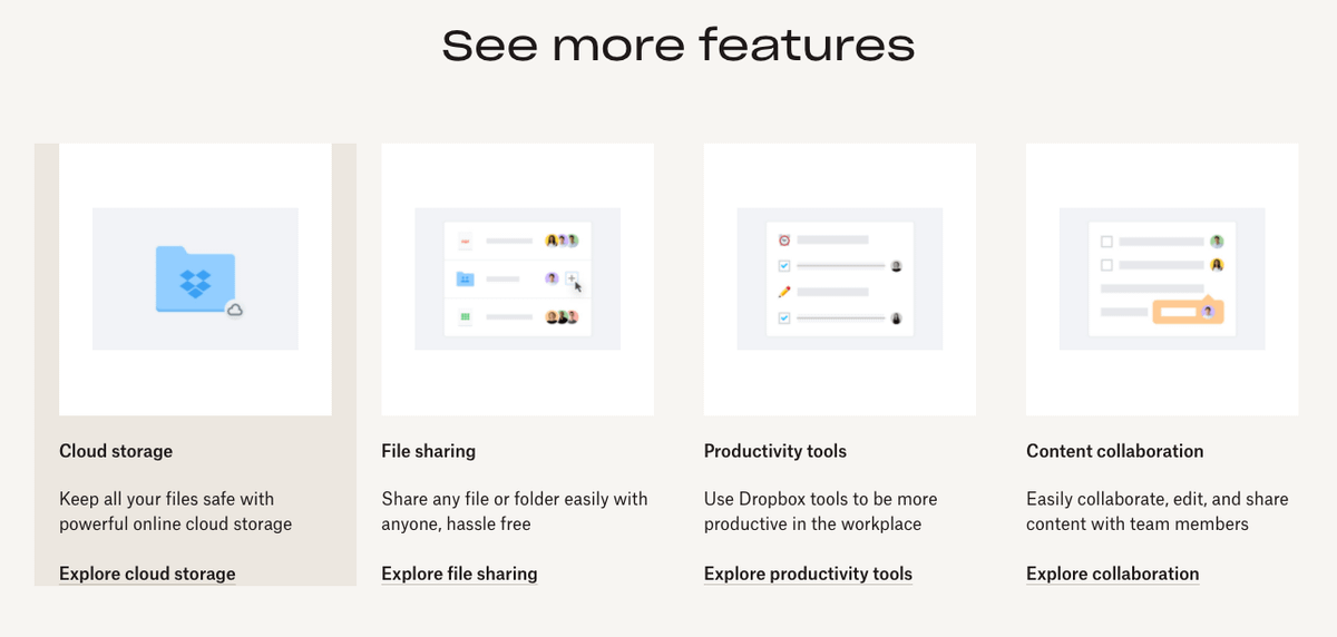 I also feel like the messaging for Dropbox could better tell coherent stories for use-cases that potential customers might haveβ€”individuals and businesses alike. My eyes glaze over trying to read the copy.