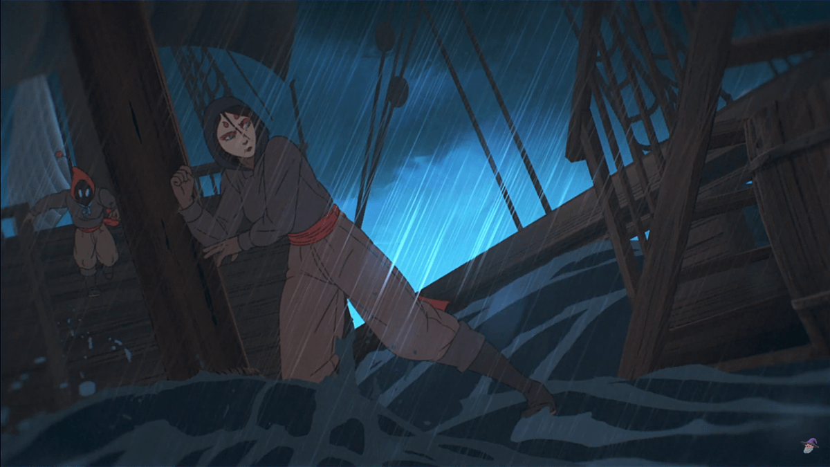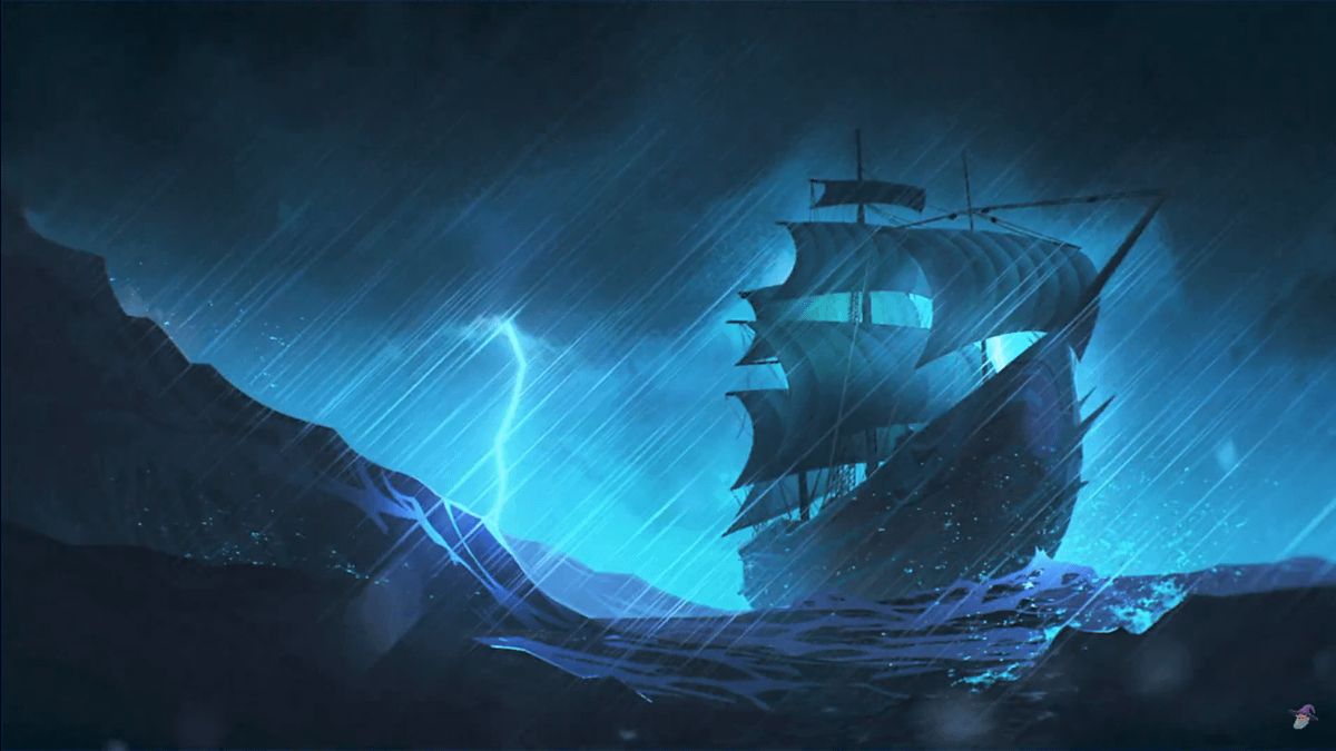 41/ We transition to a ship on a stormy sea, likely the Salt or the Brine. The boat has sails - not as modern as some of the land-based transportation that’s been shown/hinted at.