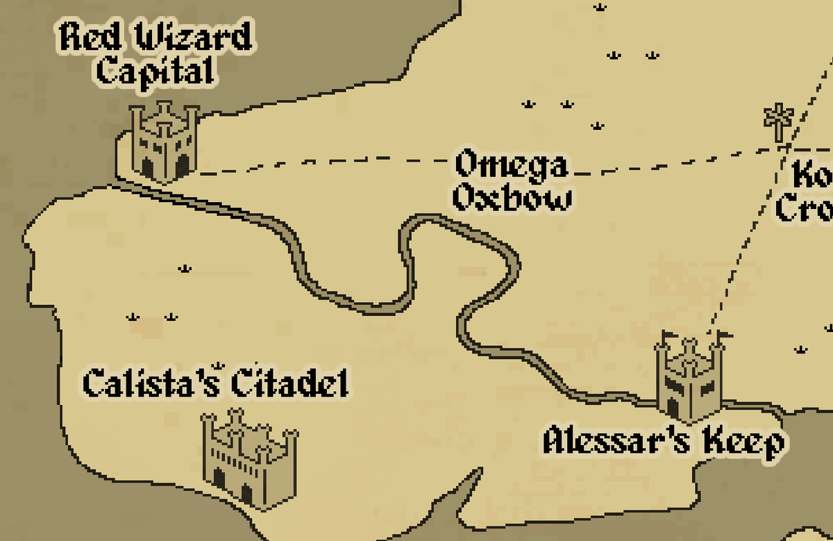 44/ One Easter Egg here - the map that appears behind the wizards. The peninsula beside the Wooden Boy's head matches the Omega Oxbow river in the original map. From that reference point, we can see previously unrevealed parts of the map to the west and south.