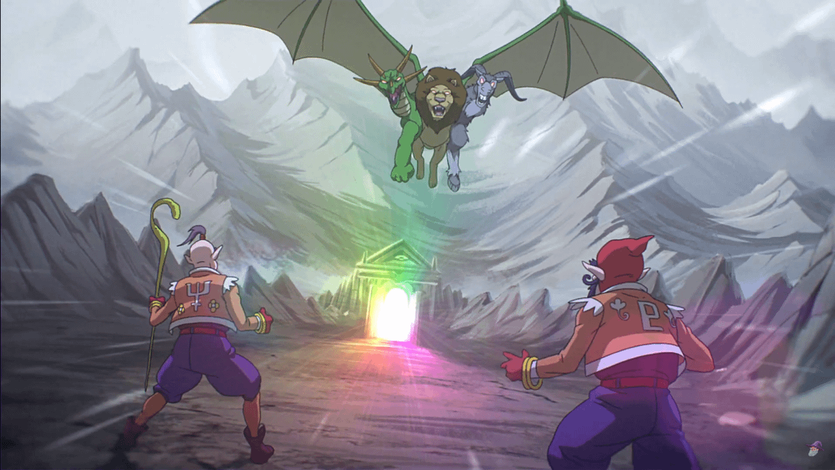 45/ Next, an iconic scene that was previously previewed to promote the Forgotten Beasts drop. A chimera (the first ever Forgotten Beast) bursts through the Gate to the 7th Realm!