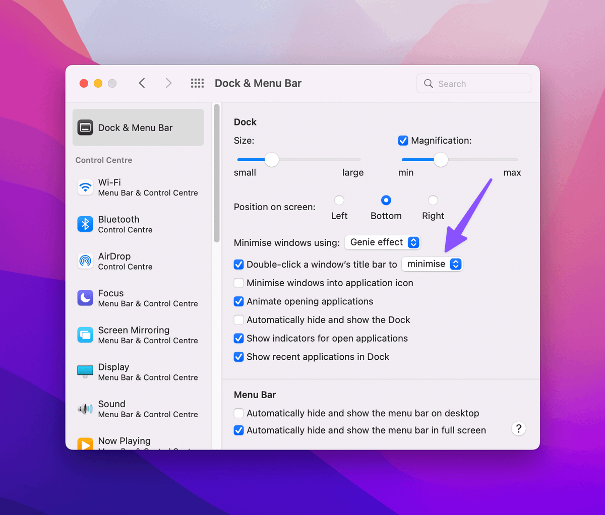 – Allowing double-click to minimize them to the dock