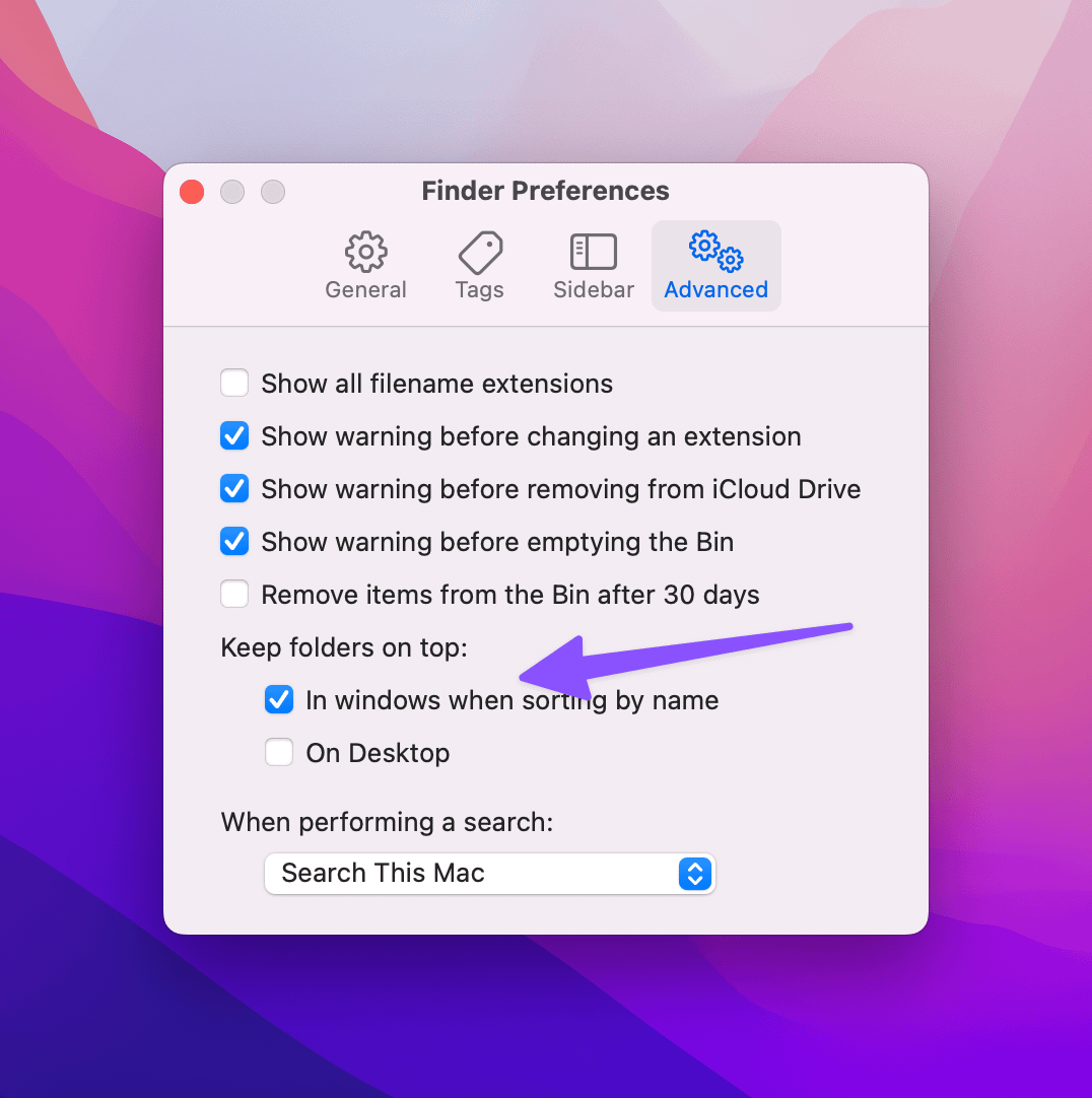 – Showing folders at the top when in column-view